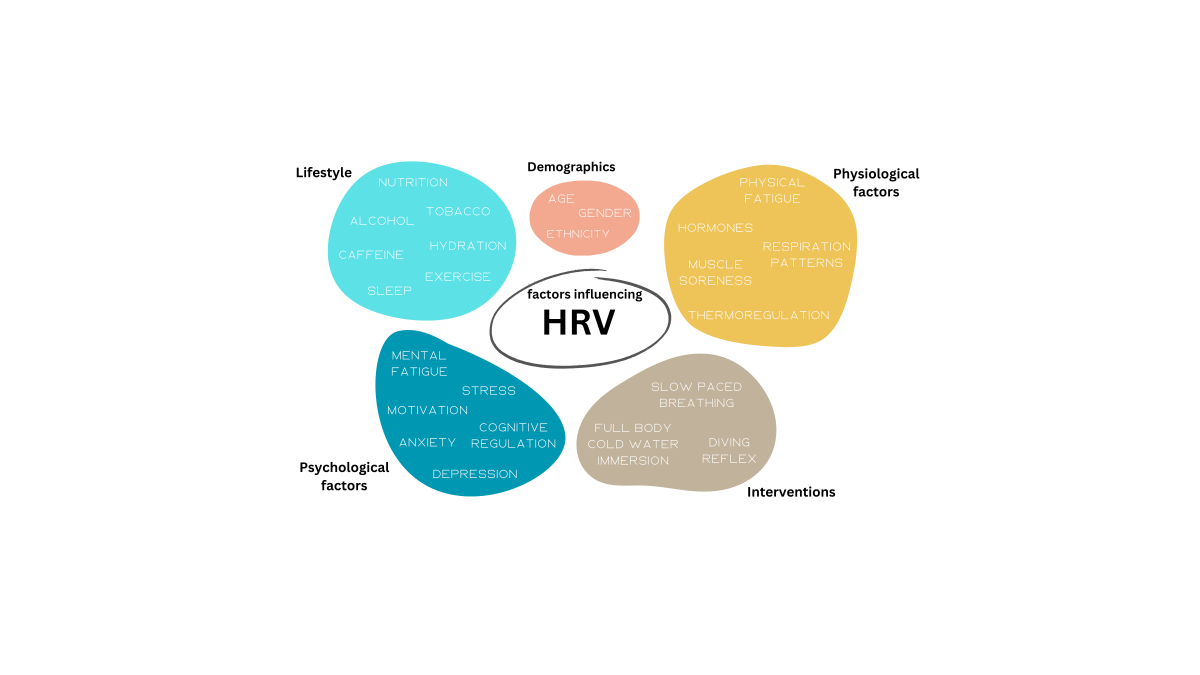 To correctly interpret your HRV, you should aim to measure it under similar conditions and at the same time each day [3, 4]. Therefore, to achieve accurate HRV readings, it is advisable to gather measurements in the morning, prior to any food intake, caffeine intake, physical activity, or mental stress [1]. A typical training day using HRV measurement is shown in Figure 1. Some of the most important factors influencing HRV are shown in Figure 2.
